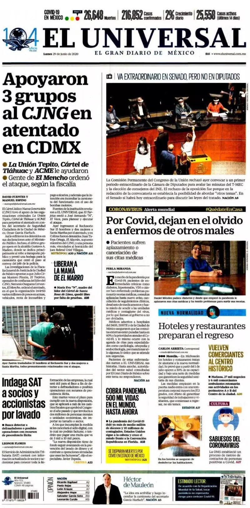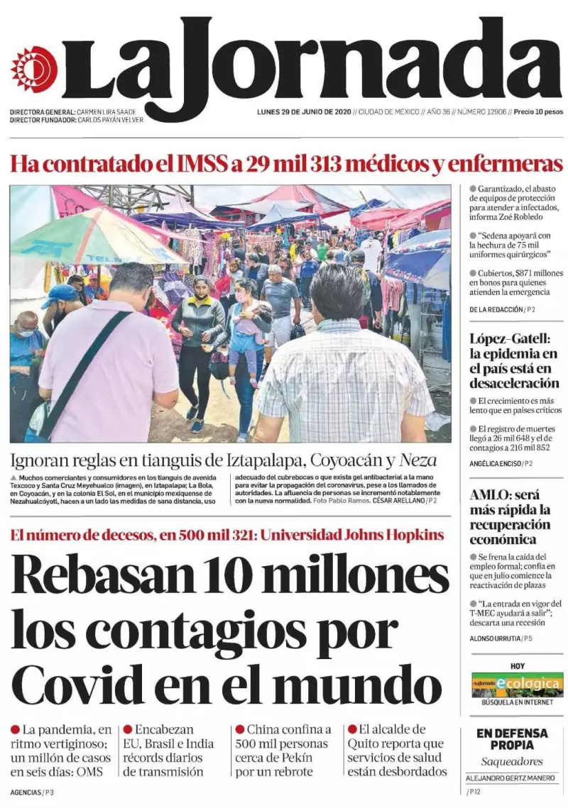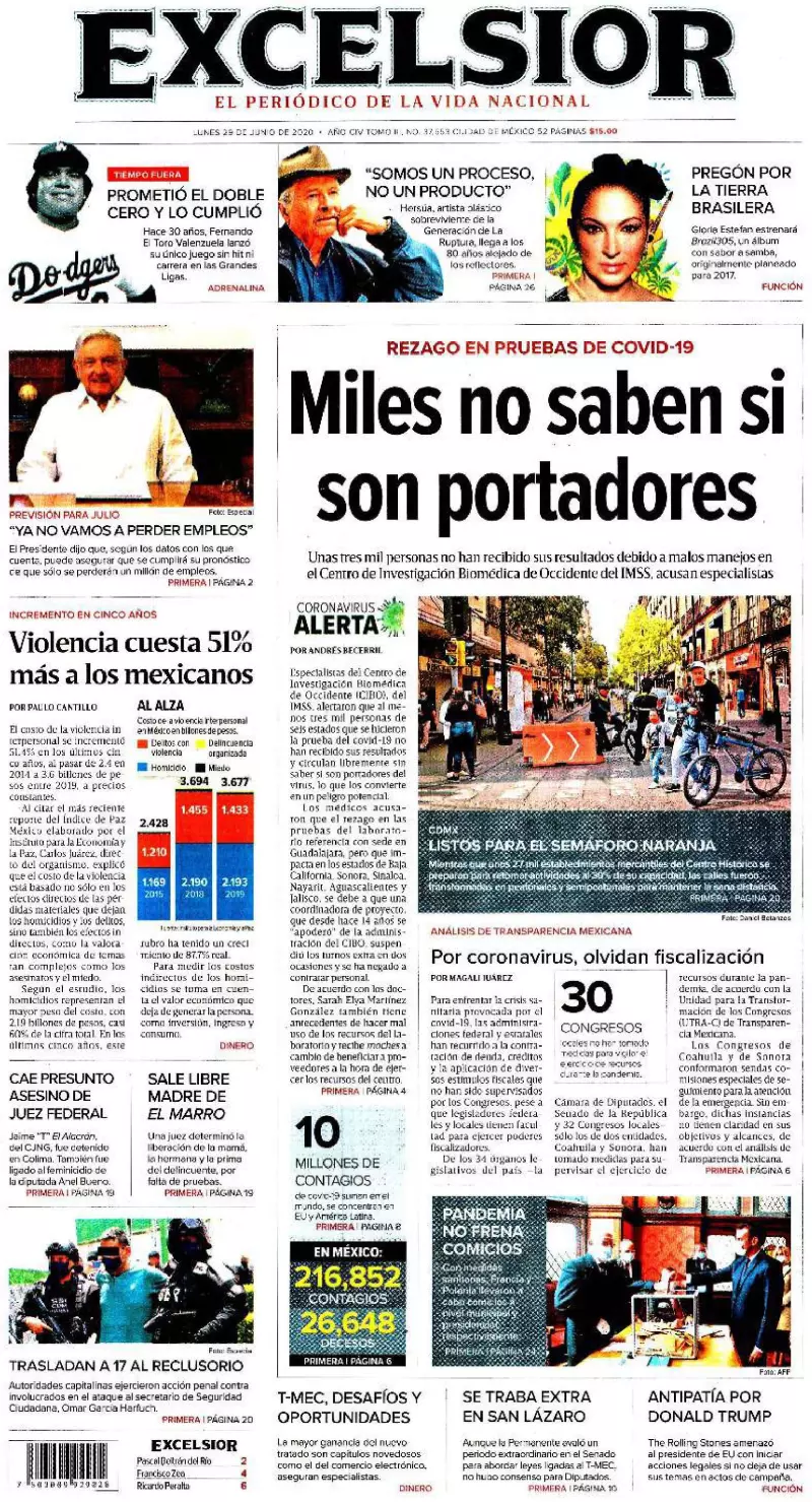 Especialistas del Centro de Investigación Biomédica de Occidente (CIBO), del IMSS, alertaron que al menos tres mil personas de seis estados que se hicieron la prueba del COVID-19 no han recibido sus resultados y circulan libremente sin saber si son portadores del virus, lo que los convierte en un peligro potencial, destaca Excélsior. Los médicos acusaron que el rezago en las pruebas del laboratorio referencia con sede en Guadalajara, pero que impacta en los estados de Baja California, Sonora, Sinaloa, Nayarit, Aguascalientes y Jalisco, se debe a que una coordinadora de proyecto, que desde hace 14 años se “apoderó” de la administración del CIBO, suspendió los turnos extra en dos ocasiones y se ha negado a contratar personal.