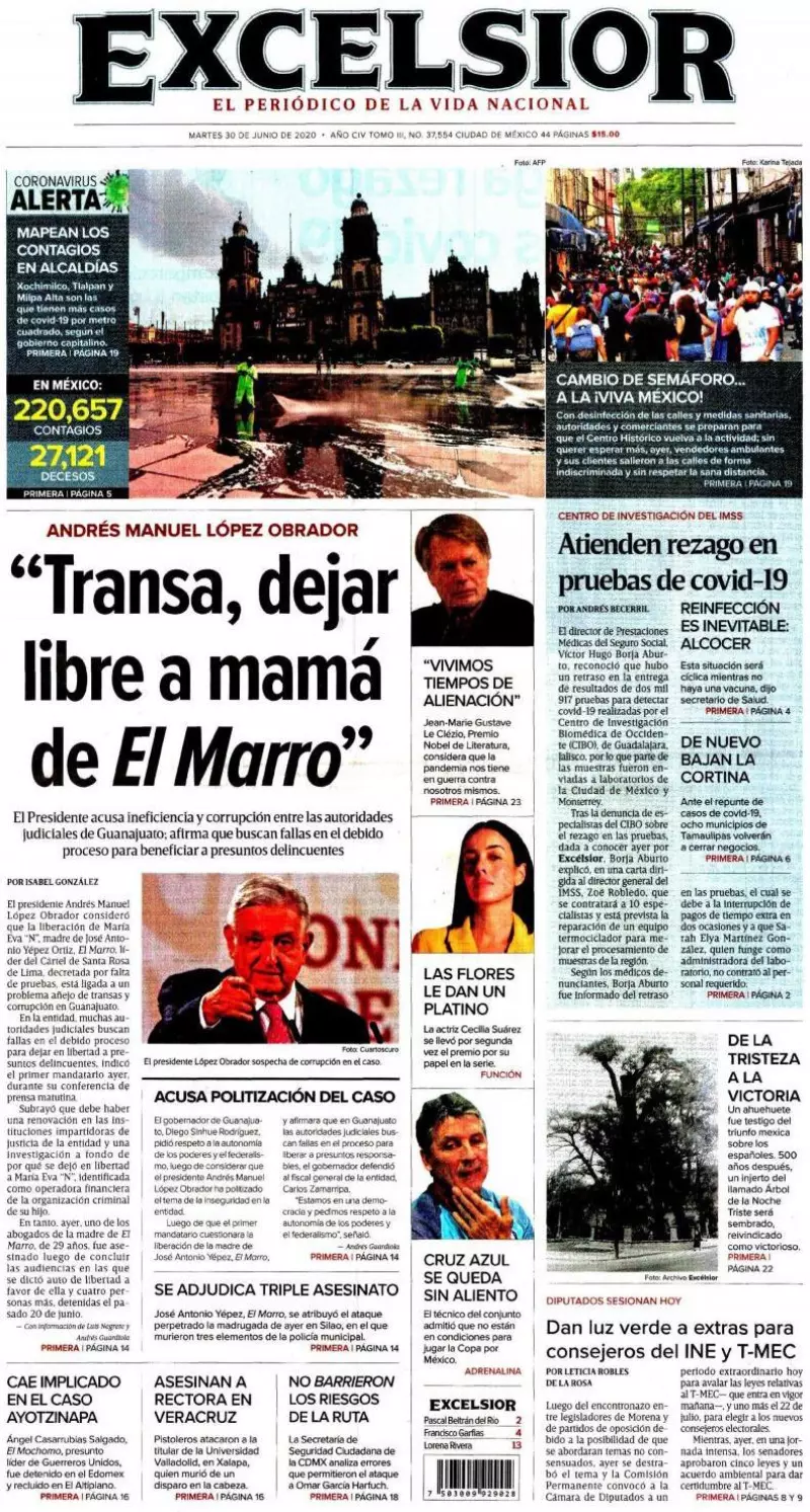 El presidente Andrés Manuel López Obrador consideró que la liberación de María Eva “N”, madre de José Antonio Yépez Ortiz, El Marro, líder del Cártel de Santa Rosa de Lima, decretada por falta de pruebas, está ligada a un problema añejo de transas y corrupción en Guanajuato, reseña Excélsior. En la entidad, muchas autoridades judiciales buscan fallas en el debido proceso para dejar en libertad a presuntos delincuentes, indicó el primer mandatario ayer, durante su conferencia de prensa matutina.