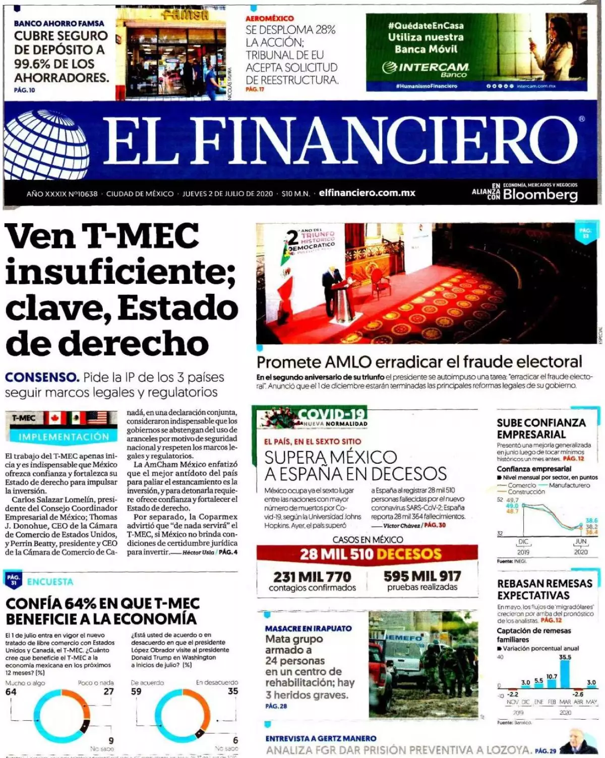 Según el conteo de la Universidad Johns Hopkins, indica El Universal, México entró en el "top 10" de contagios de COVID-19 a nivel mundial. A un mes de que comenzó la “nueva normalidad”, México superó también a España en el número de defunciones al contabilizar 28 mil 510 decesos, mientras que el país europeo tiene 28 mil 363 víctimas mortales.