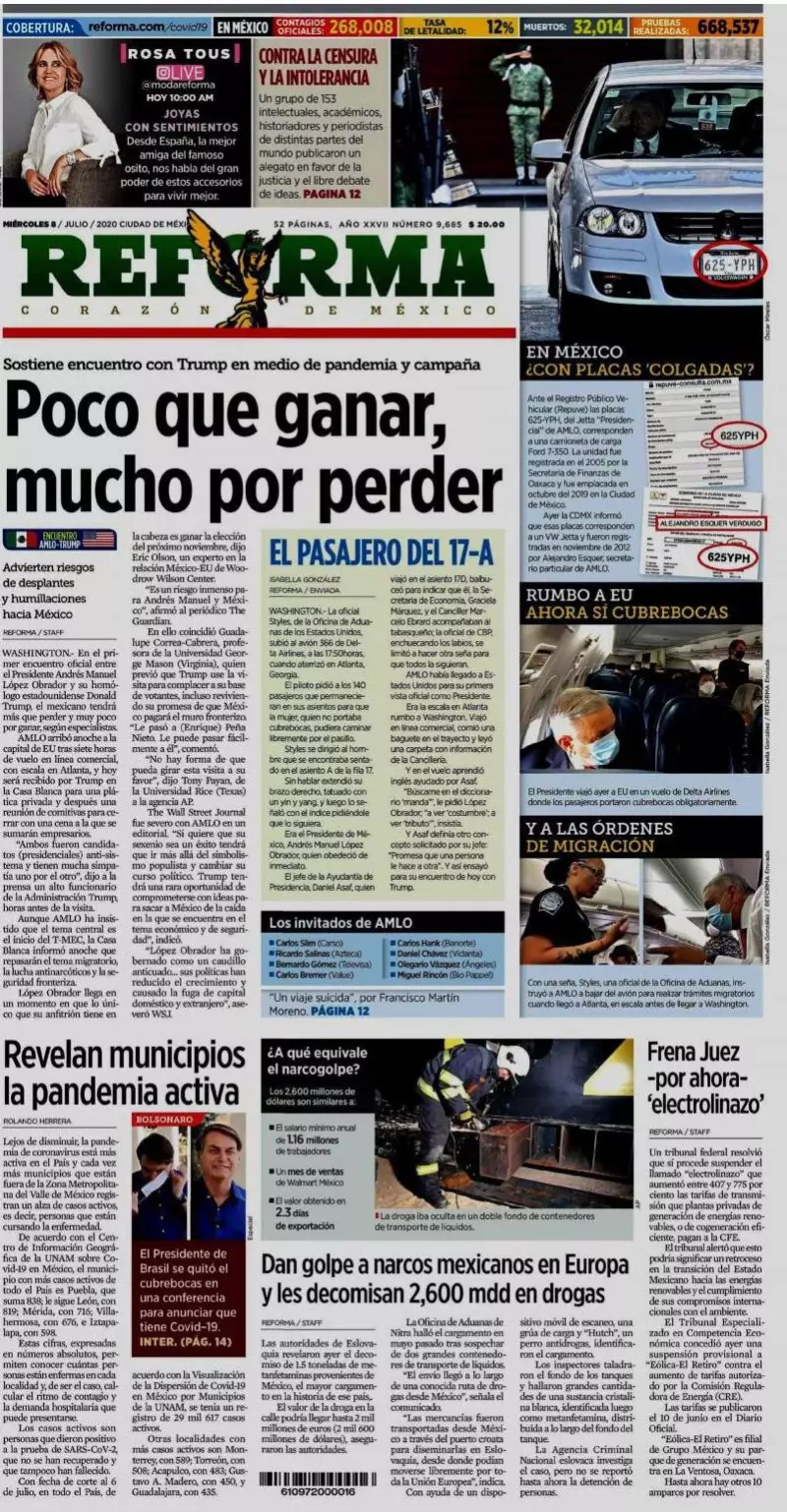 Andrés Manuel López Obrador arribó anoche a la capital de EU tras siete horas de vuelo en línea comercial, con escala en Atlanta, y hoy será recibido por Trump en la Casa Blanca para una plática privada y después una reunión de comitivas para cerrar con una cena a la que se sumarán empresarios, reseña Reforma. "Ambos fueron candidatos (presidenciales) anti-sistema y tienen mucha simpatía uno por el otro", dijo a la prensa un alto funcionario de la Administración Trump, horas antes de la visita.