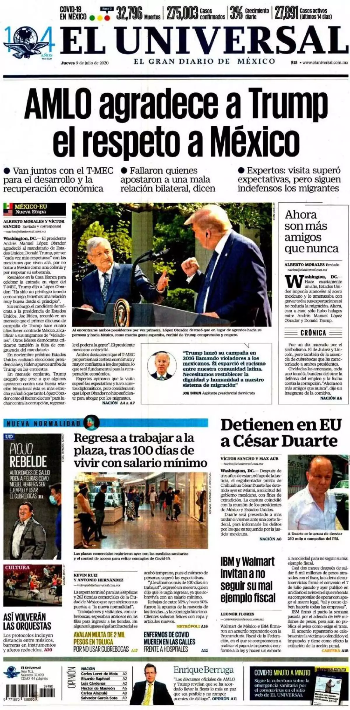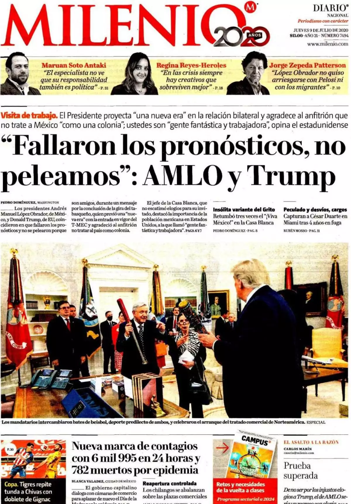 El presidente Andrés Manuel López Obrador, señala  La Jornada  , al concluir las reuniones de trabajo con su contraparte Donald Trump y su gobierno, resumió así la visita: “Fallaron los pronósticos, no nos peleamos, somos amigos y vamos a seguir siendo amigos. Su anfitrión coincidió al afirmar que tanto en México como en Estados Unidos han aprendido a no apostar en contra de nosotros, en referencia a la gran relación con su amigo”.