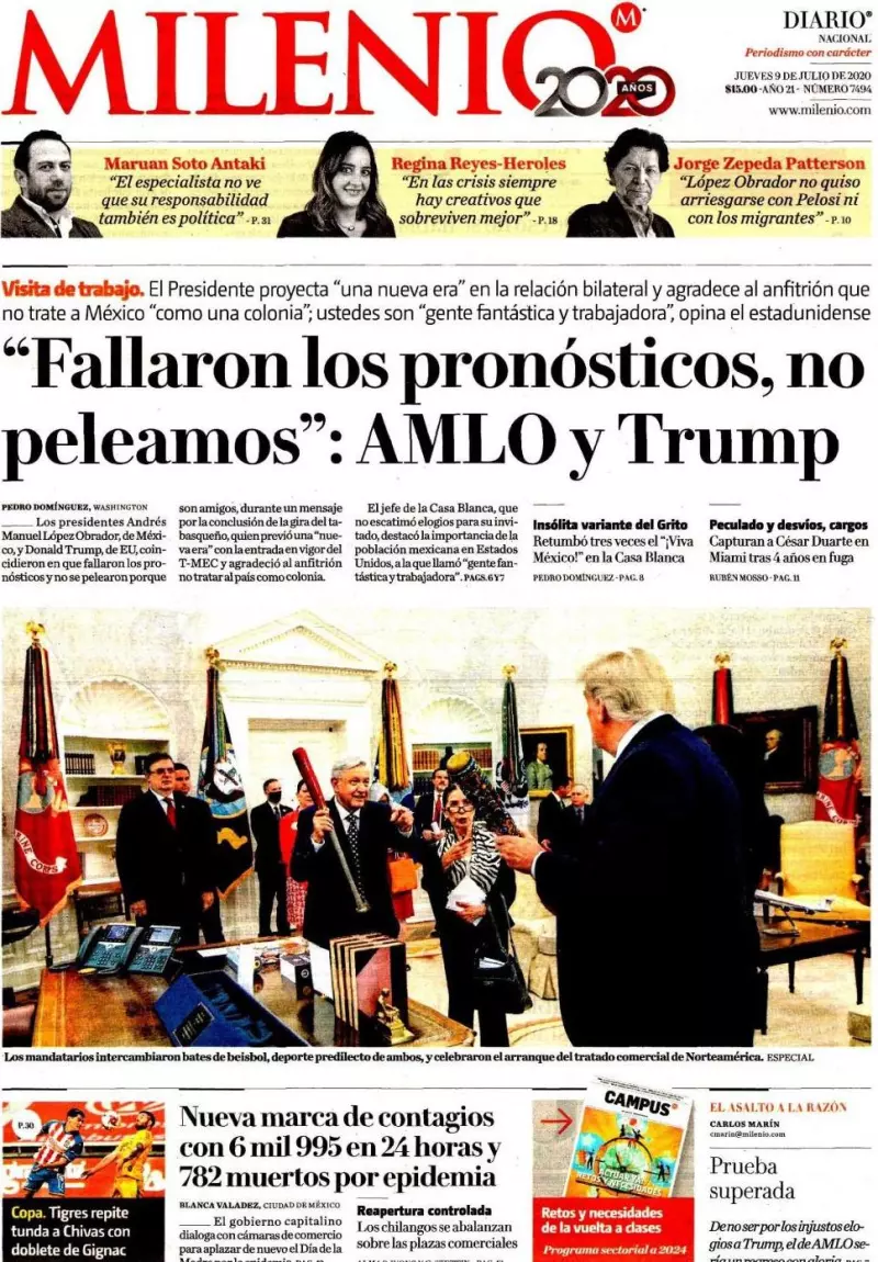 El presidente Andrés Manuel López Obrador, señala La Jornada , al concluir las reuniones de trabajo con su contraparte Donald Trump y su gobierno, resumió así la visita: “Fallaron los pronósticos, no nos peleamos, somos amigos y vamos a seguir siendo amigos. Su anfitrión coincidió al afirmar que tanto en México como en Estados Unidos han aprendido a no apostar en contra de nosotros, en referencia a la gran relación con su amigo”.