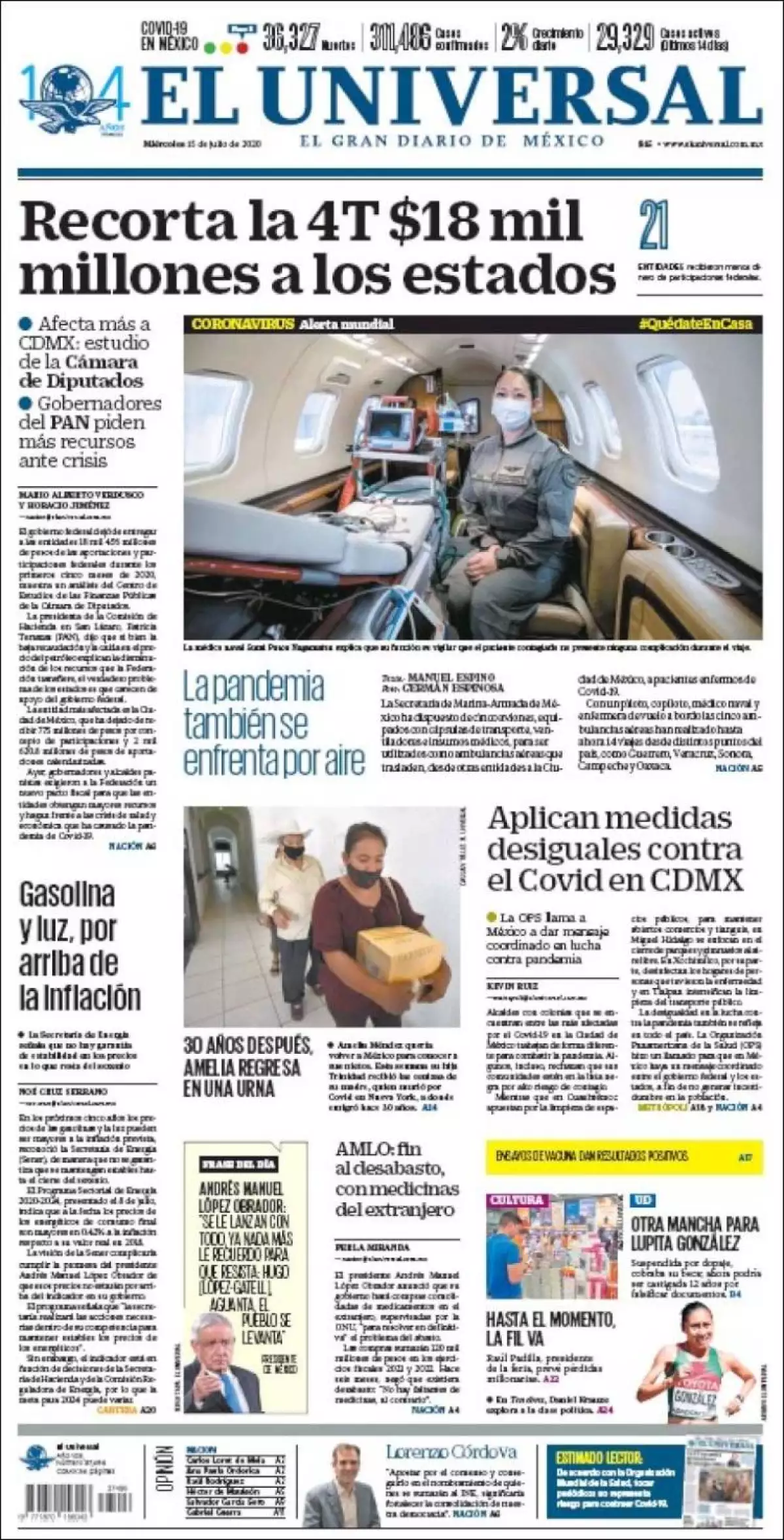 El gobierno del presidente Andrés Manuel López Obrador entregó 18 mil 456 millones de pesos menos de recursos federalizados a los estados durante los primeros cinco meses de 2020, según un análisis del Centro de Estudios de las Finanzas Públicas de la Cámara de Diputados, indica El Universal. El hueco que dejó la Federación a las haciendas locales fue por las menores transferencias que se realizaron por la vía de aportaciones (recursos etiquetados para educación, salud, seguridad e infraestructura, principalmente) y participaciones (ingresos de libre uso para los gobiernos subnacionales).