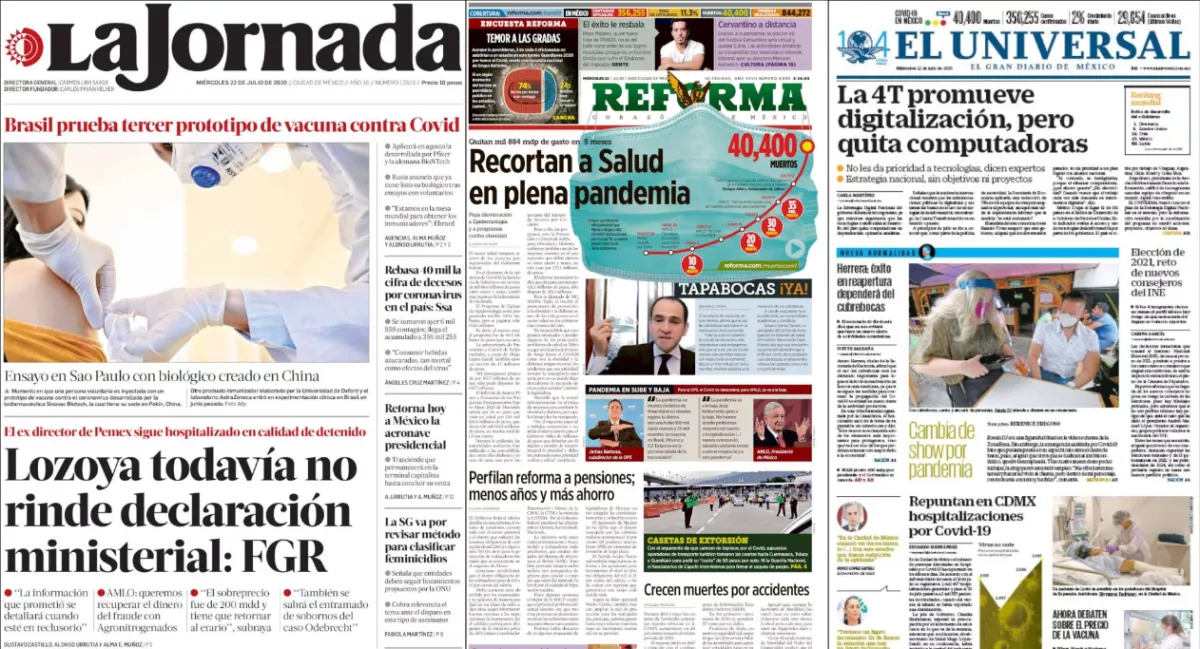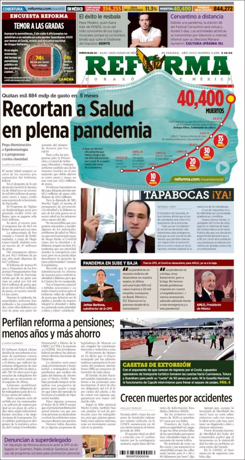 El sector Salud tampoco se salvó de los recortes presupuestales del Gobierno federal, destaca Reforma . En el despunte de la epidemia de COVID-19, la Secretaría de Salud tuvo un recorte de 1,884 millones de pesos entre enero y mayo, confirman reportes de la Secretaría de Hacienda.