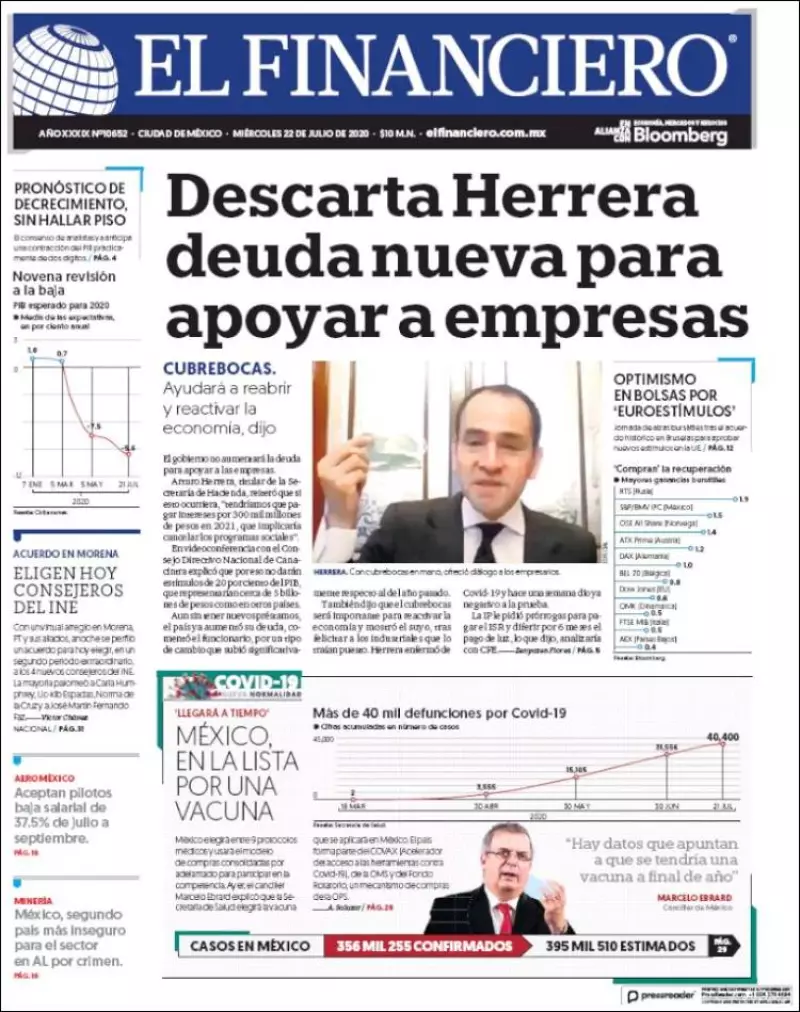 El secretario de Hacienda y Crédito Público (SHCP), Arturo Herrera, reafirmó la convicción del gobierno federal de no contratar nueva deuda para otorgar apoyos fiscales a las empresas que padecen la crisis económica por COVID-19, destaca El Financiero , pero a cambio, ofreció a los industriales explorar con la Comisión Federal de Electricidad (CFE) la posibilidad de diferir pagos de luz a enero del próximo año.