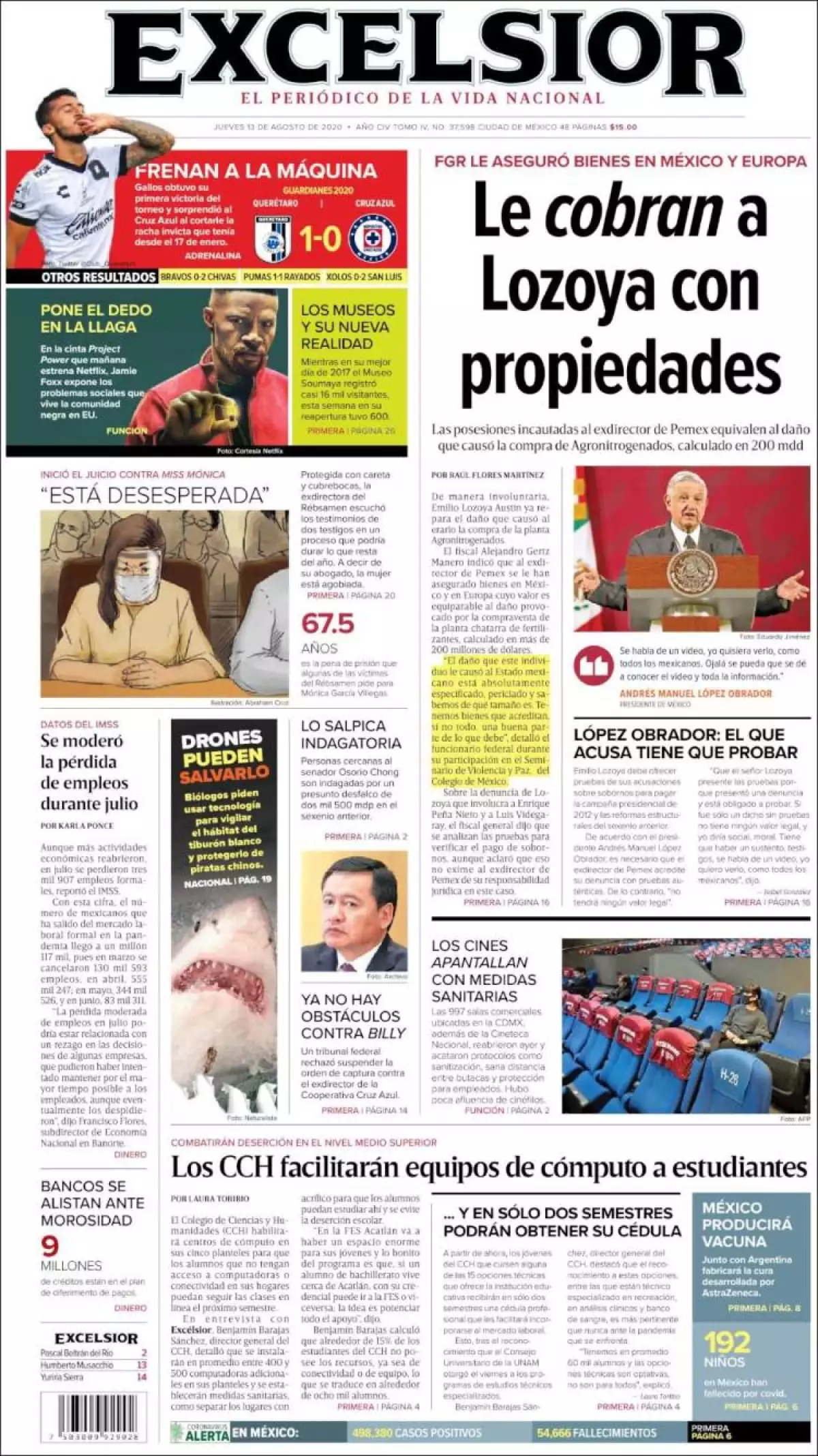 De manera involuntaria, Emilio Lozoya Austin ya repara el daño que causó al erario la compra de la planta Agronitrogenados, señala Excélsior. El fiscal Alejandro Gertz Manero indicó que al exdirector de Pemex se le han asegurado bienes en México y en Europa cuyo valor es equiparable al daño provocado por la compraventa de la planta chatarra de fertilizantes, calculado en más de 200 millones de dólares.