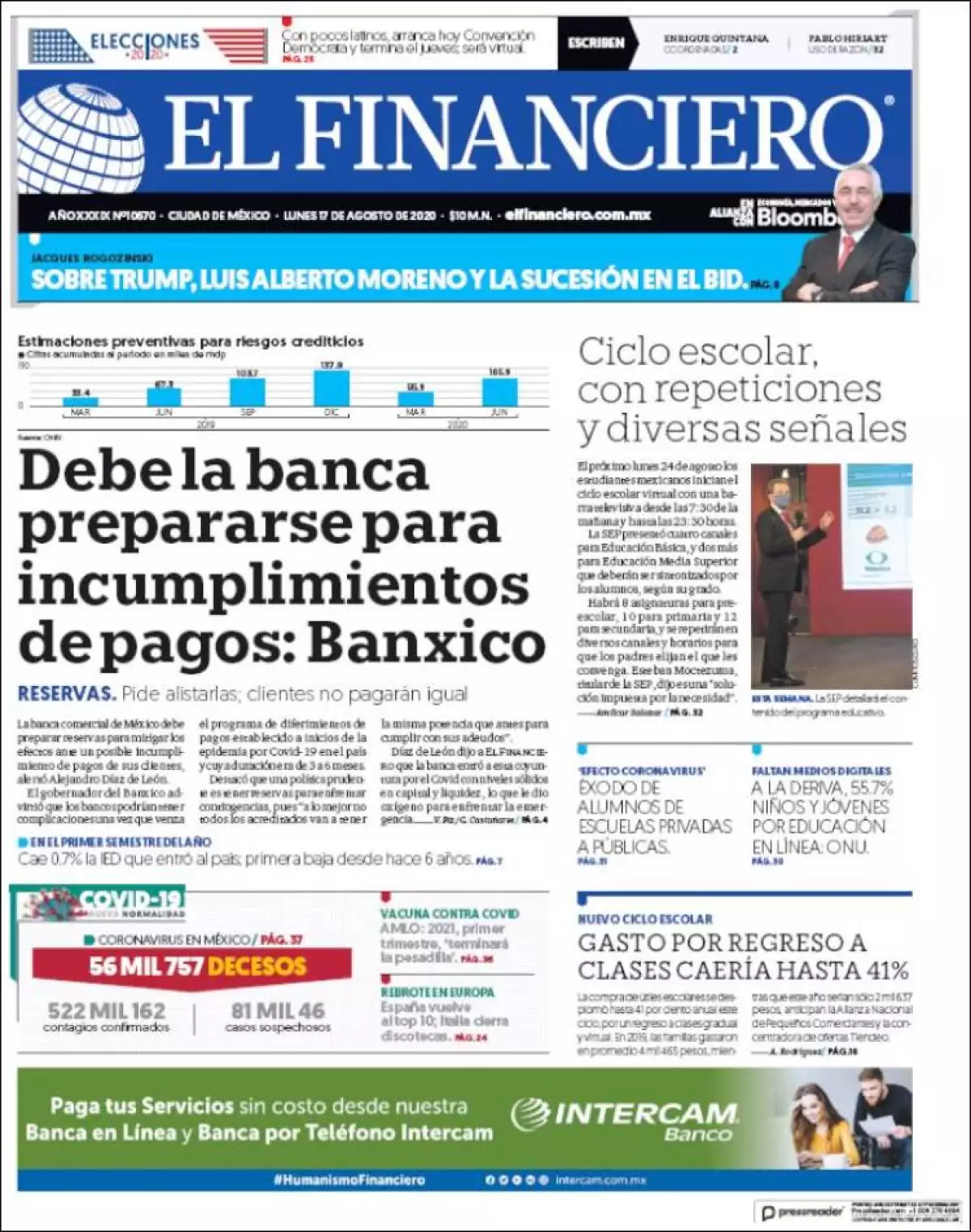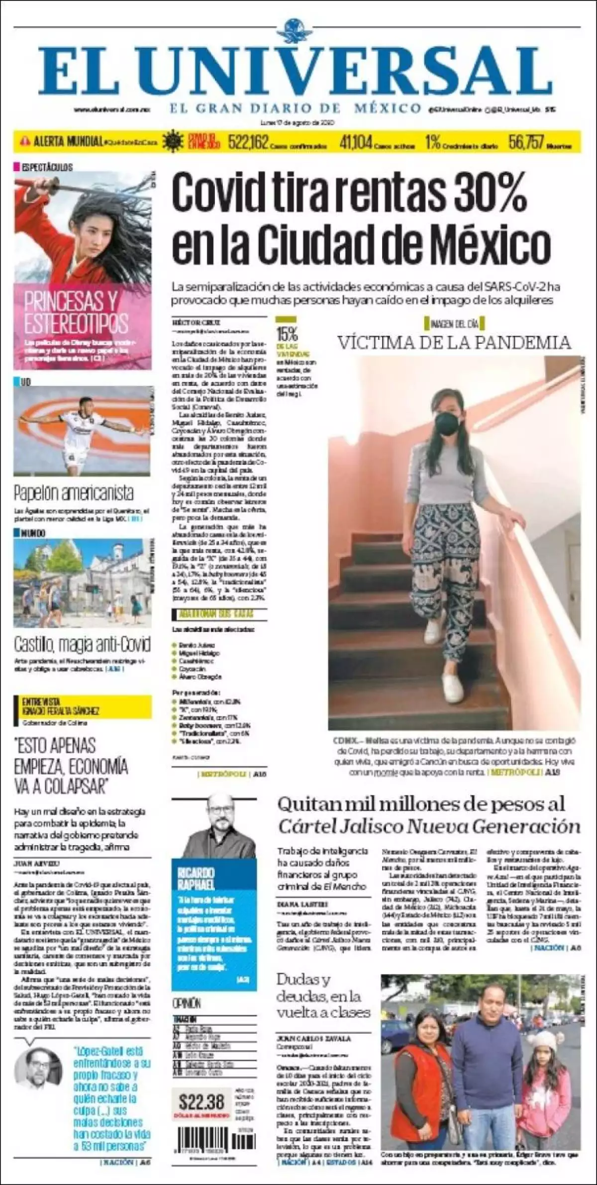 Los daños ocasionados por la semiparalización de la economía en la Ciudad de México han provocado el impago de alquileres en más de 30% de los inmuebles, de acuerdo con datos del Consejo Nacional de Evaluación de la Política de Desarrollo Social (Coneval) citados por El Universal en uno de los temas de portada.