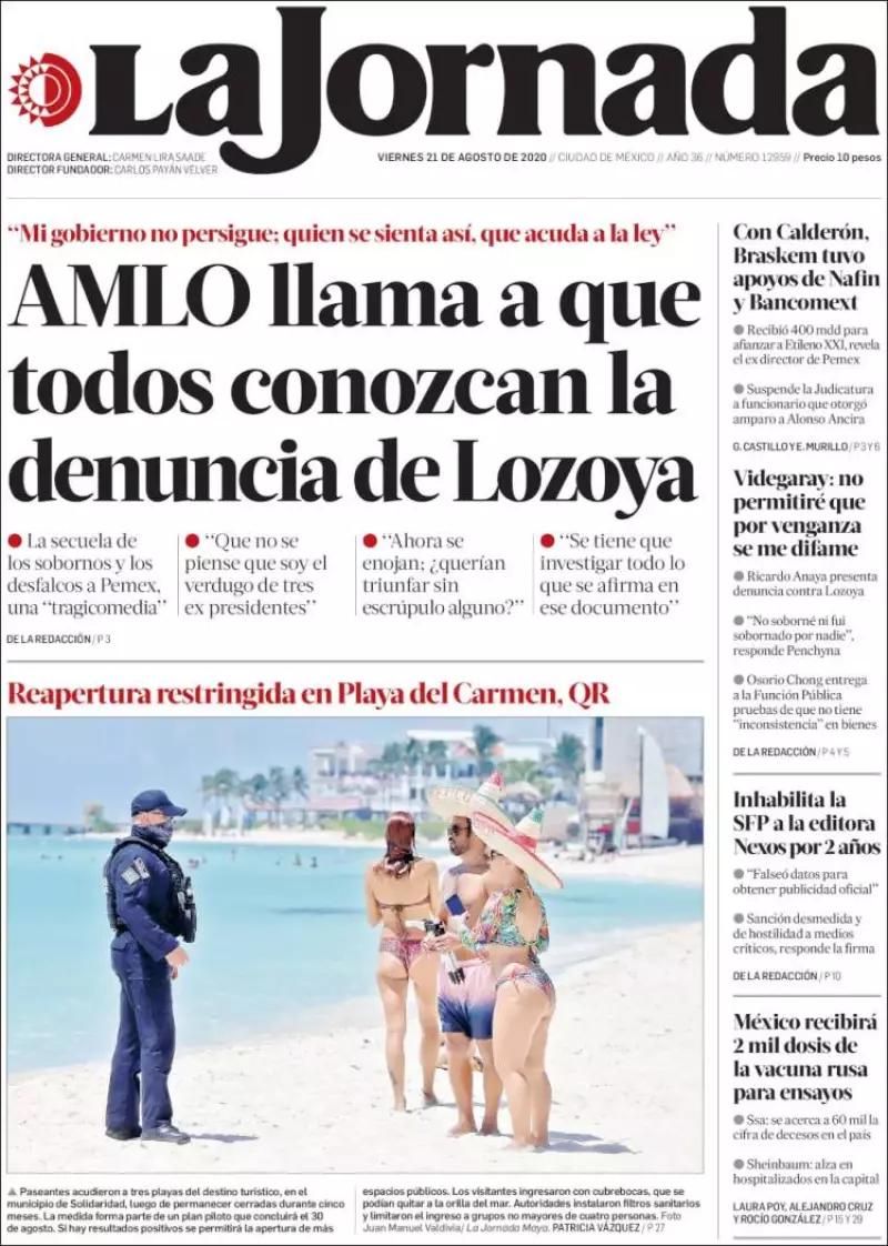 El presidente Andrés Manuel López Obrador llamó a todos los ciudadanos a que lean la denuncia que presentó Emilio Lozoya Austin, ex director de Pemex –y que fue filtrada en medio del proceso que se le imputa–, para que se conozca la forma en que se perpetraron desfalcos en administraciones anteriores, ya que “el pueblo se cansa de tanta pinche transa”, refiere La Jornada . Tras calificar el caso de tragicomedia y una situación escandalosa, indicó que el documento es auténtico, pero no significa que todo sea cierto, por lo que la Fiscalía General de la República (FGR) debe investigar lo que ahí se señala y llamar a declarar a todos los involucrados.