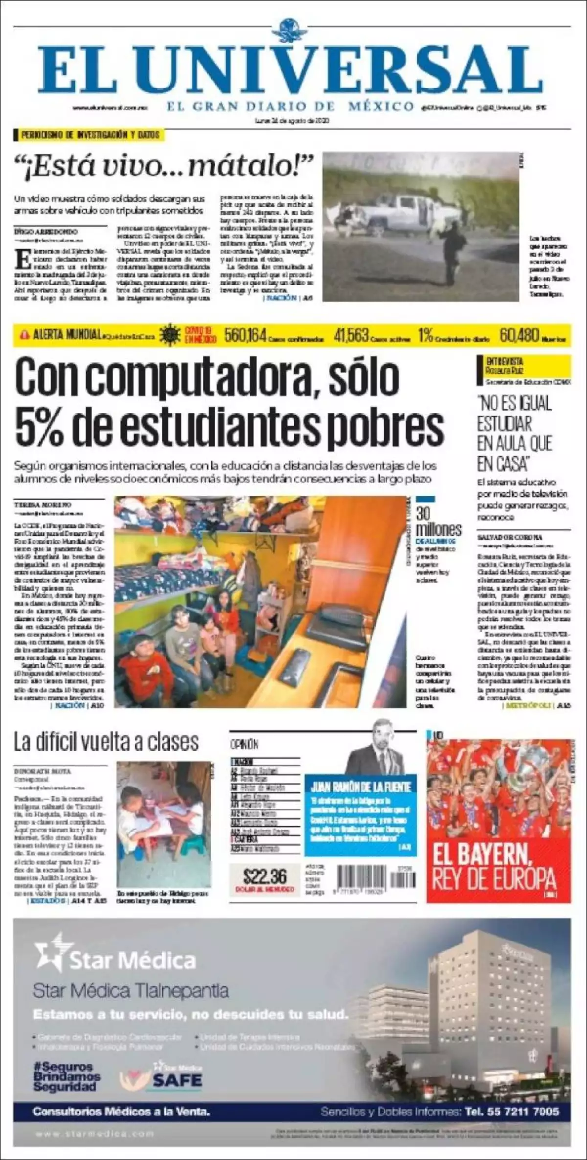 #EnPortadas 📰 Con computadora, solo 5% de estudiantes pobres