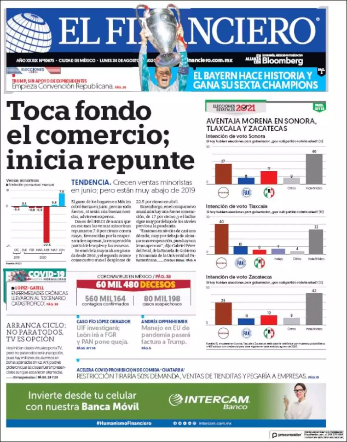 El gasto de los hogares en México cobró fuerza en junio y registró un repunte, favorecido por la reapertura de las empresas, la recuperación parcial del empleo y el dinamismo de las remesas, aunque los analistas esperan que se modere en los próximos meses, indica El Financiero. Los ingresos reales por suministro de bienes y servicios en las empresas comerciales al menudeo aumentaron 7.8% a tasa mensual en junio, mes de la nueva normalidad, informó el viernes el Instituto Nacional de Estadística y Geografía (Inegi).