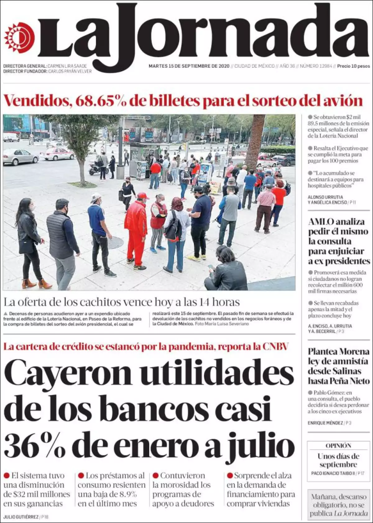 La utilidad del conjunto de bancos que opera en el país retrocedió a 65 mil millones de pesos entre enero y julio, una caída de 35.6% en comparación con el mismo periodo de 2019, indica La Jornada , lo que implicó una disminución de 32 mil millones de pesos, reveló la Comisión Nacional Bancaria y de Valores (CNBV).