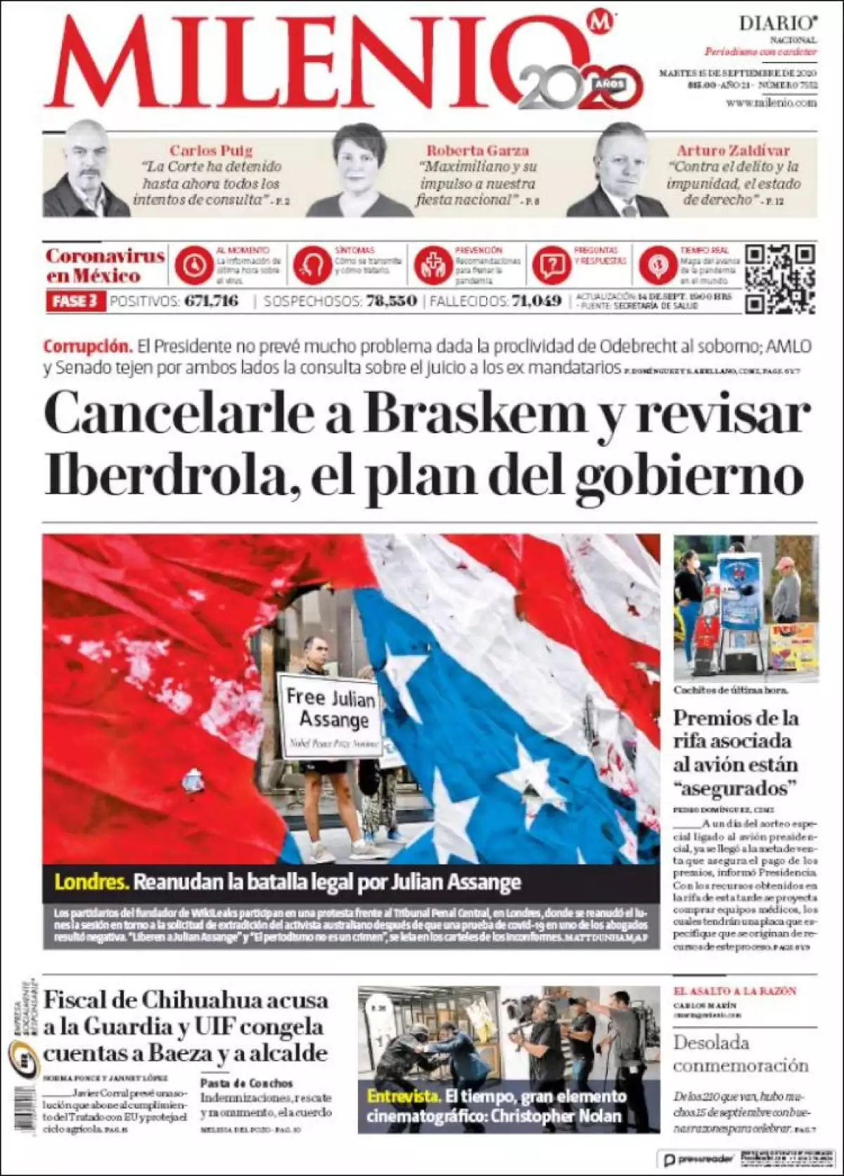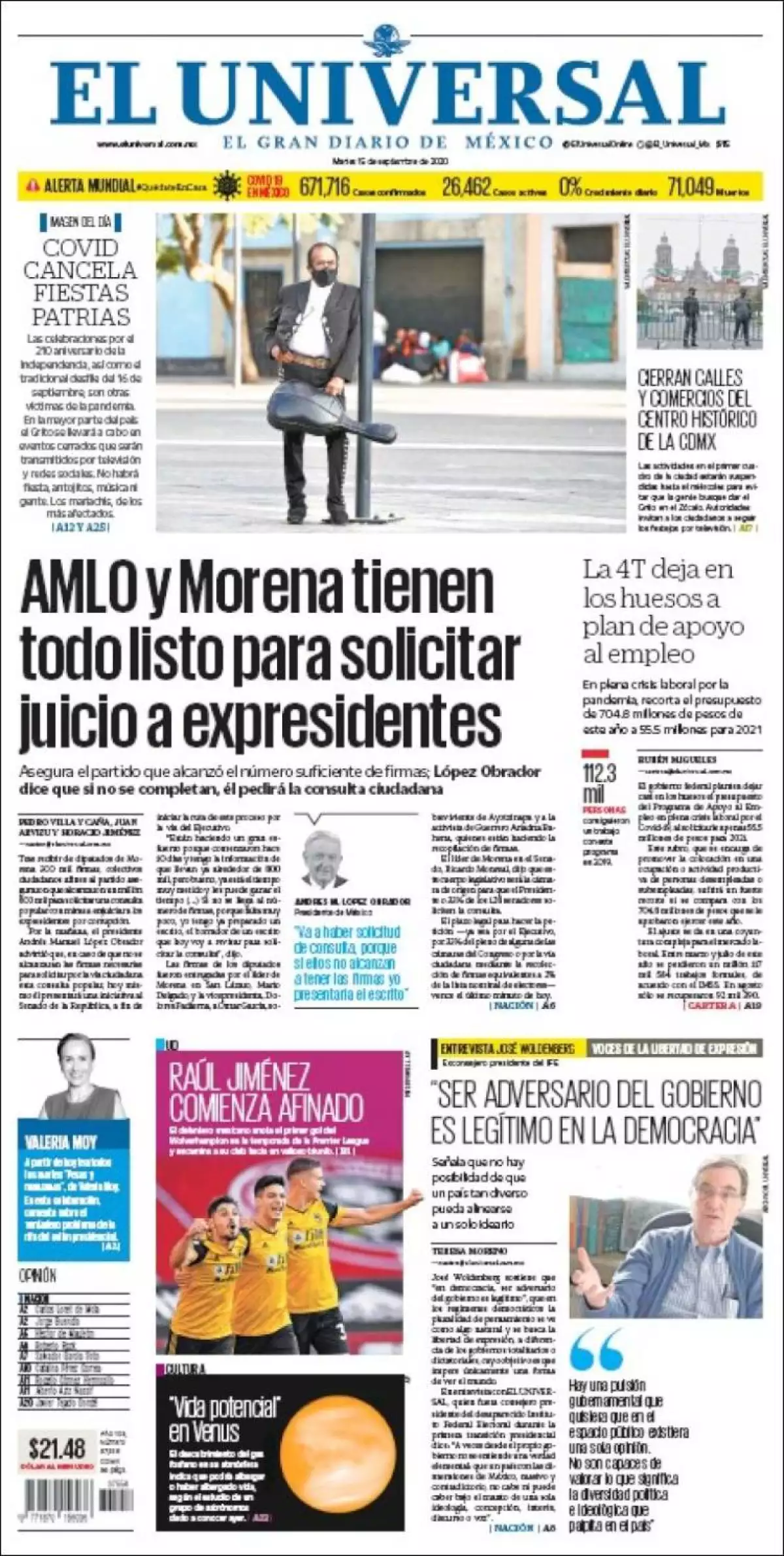 En la víspera de concluir el plazo legal para recabar un millón 800 mil firmas para solicitar, por la vía ciudadana, una consulta popular a fin de llevar a juicio a los últimos cinco expresidentes por actos de corrupción, el Jefe del Ejecutivo federal, Andrés Manuel López Obrador, dijo que presentará esta iniciativa al Senado para comenzar esta ruta, señala El Universal en uno de los temas de portada.
