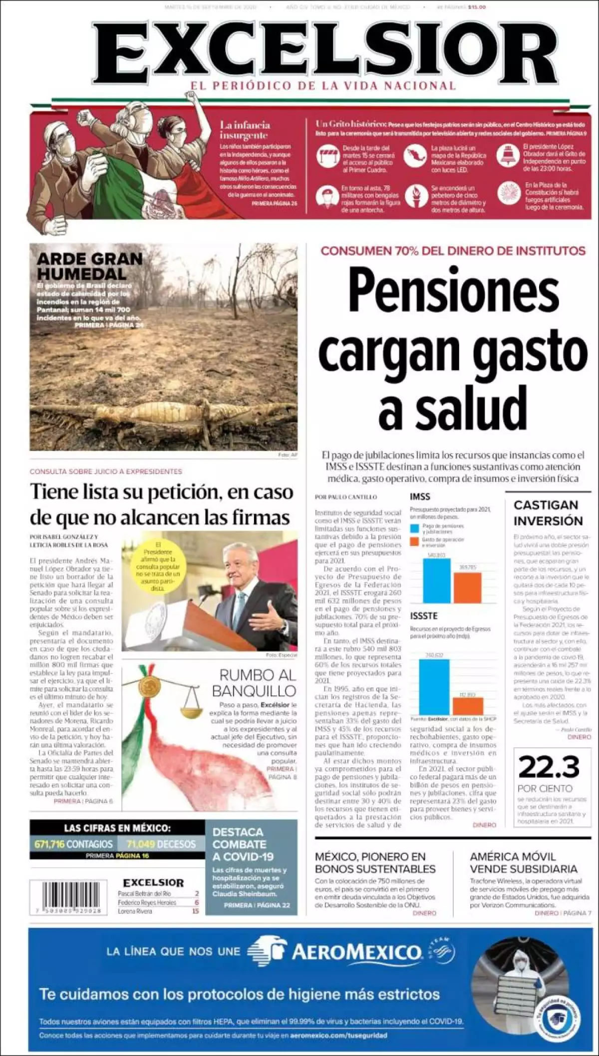 Institutos de seguridad social como el IMSS e ISSSTE verán limitadas sus funciones sustantivas debido a la presión que el pago de pensiones ejercerá en sus presupuestos para 2021, refiere Excélsior. De acuerdo con el Proyecto de Presupuesto de Egresos de la Federación 2021, el ISSSTE erogará 260 mil 632 millones de pesos en el pago de pensiones y jubilaciones, 70% de su presupuesto total para el próximo año.