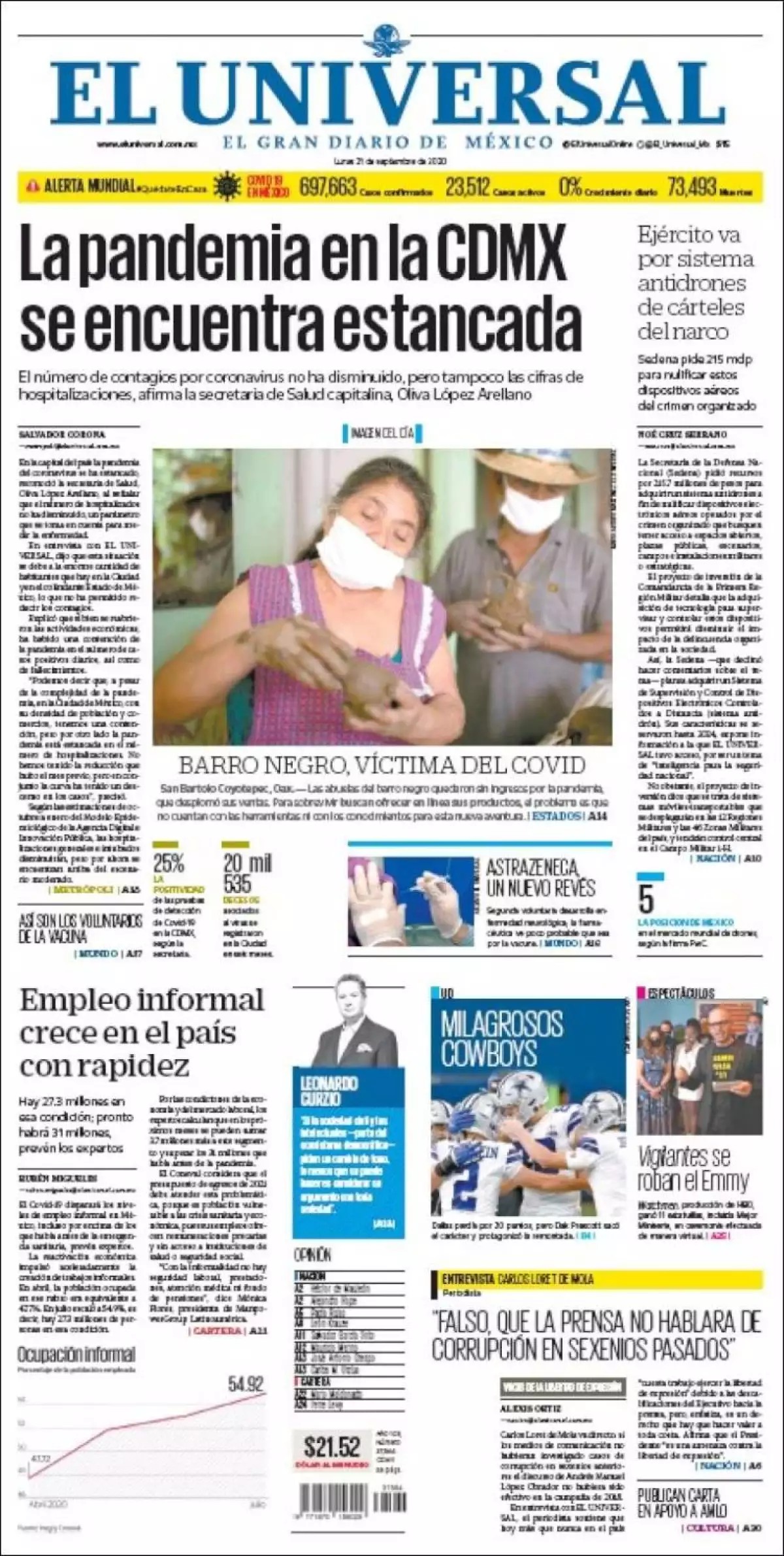 #EnPortadas 📰 La pandemia en la CDMX se estanca