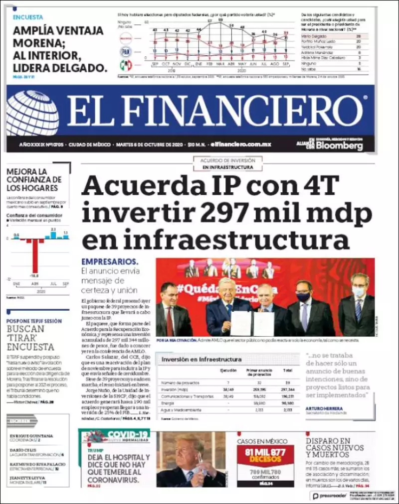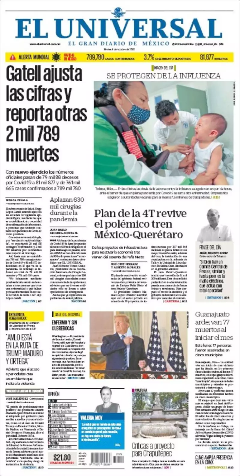 Los principales diarios nacionales abren este martes con el ajuste en las cifras de COVID-19 en México, además del Tren a Querétaro y el Plan de Infraestructura anunciado este lunes en acuerdo con la IP.