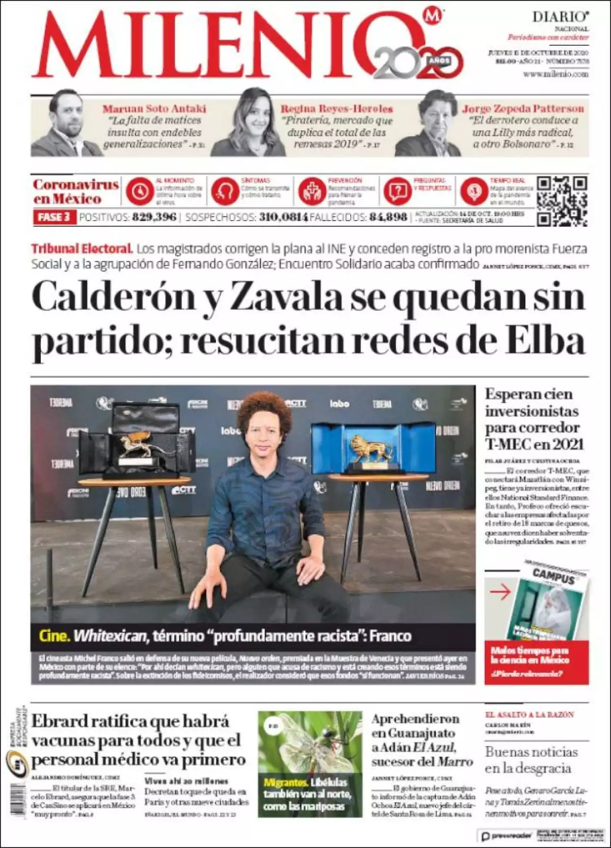 El Tribunal Electoral del Poder Judicial de la Federación ratificó la resolución del INE para negar el registro, como partido político nacional, a México Libre, organización que encabezan la excandidata presidencial Margarita Zavala y el expresidente Felipe Calderón, consignan El Universal y Milenio en uno de los temas de portada.