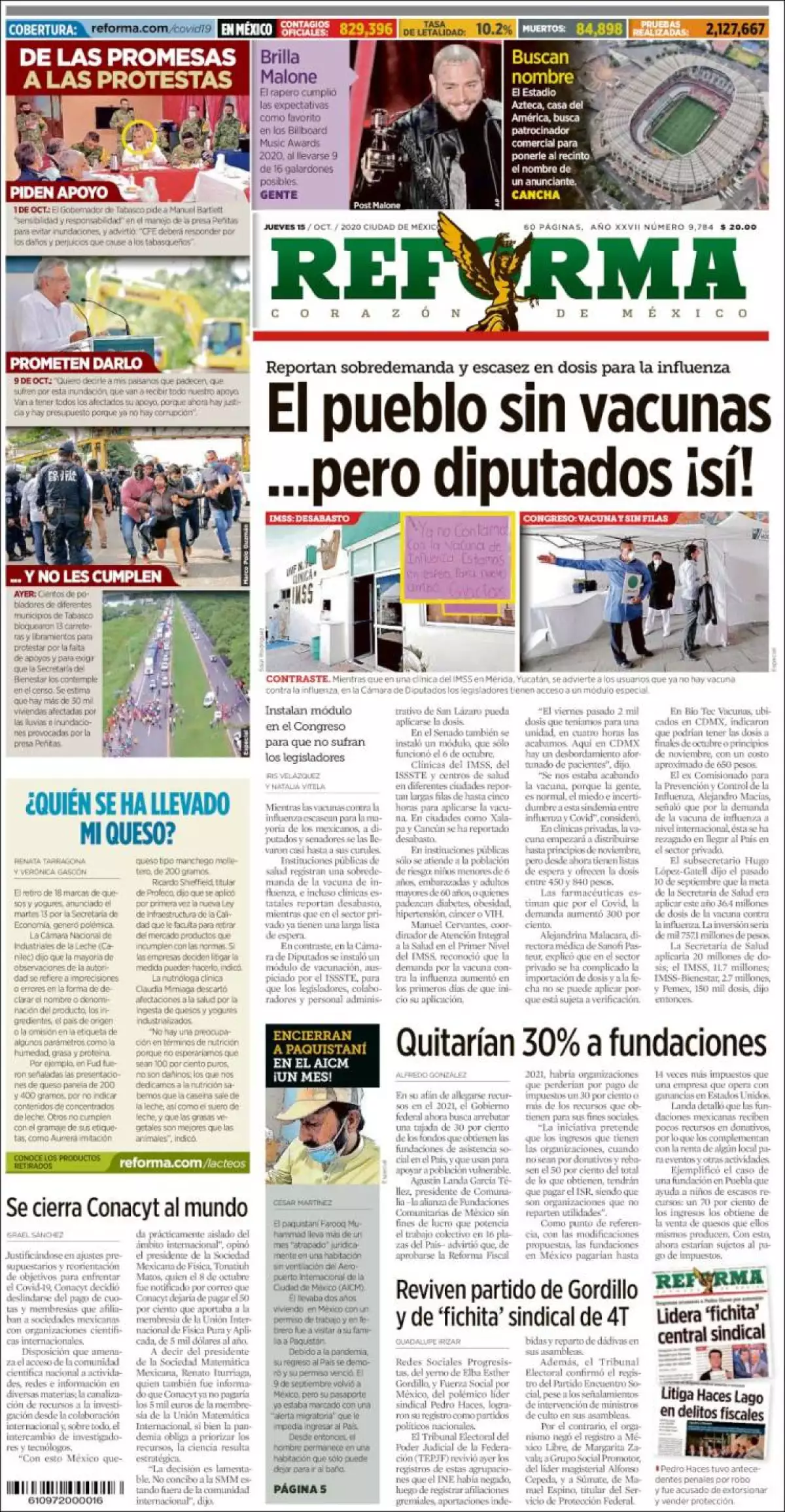 Mientras las vacunas contra la influenza escasean, a diputados federales y senadores se las llevaron casi hasta a sus curules, señala Reforma . Instituciones públicas de salud registran una sobredemanda de la vacuna de influenza e incluso clínicas estatales reportan desabasto, mientras que en el sector privado ya tienen una larga lista de espera.
