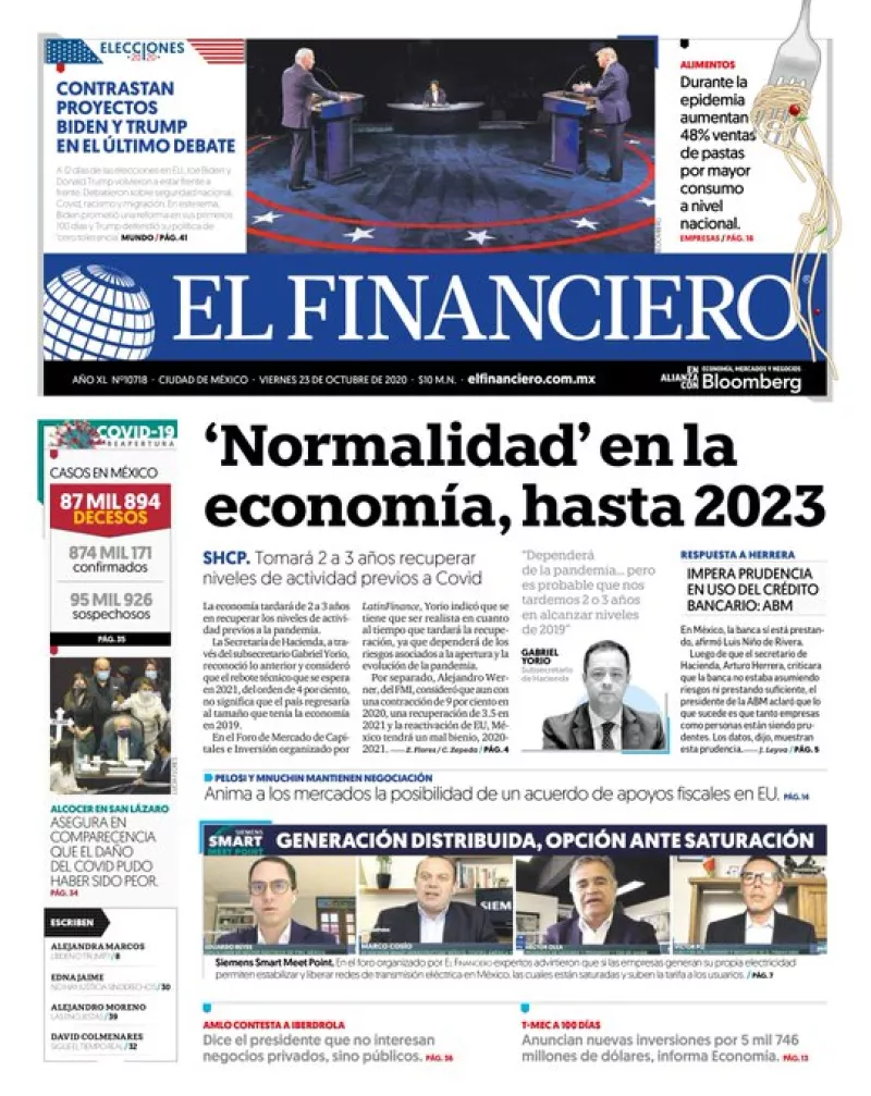 La Secretaría de Hacienda y Crédito Público (SHCP), en voz del subsecretario Gabriel Yorio, reconoció por primera vez que la economía mexicana tardará de 2 a 3 años en recuperar su nivel prepandemia, indica El Financiero . Al participar en el Foro de Mercado de Capitales e Inversión organizado por LatinFinance, Yorio indicó que el 2020 cerrará con una caída de entre 7 y 9%, lo que dará un rebote técnico en 2021 del orden de 4%; sin embargo, aclaró que el repunte esperado para el próximo año no implica que el país habrá regresado al tamaño que tenía la economía en 2019.