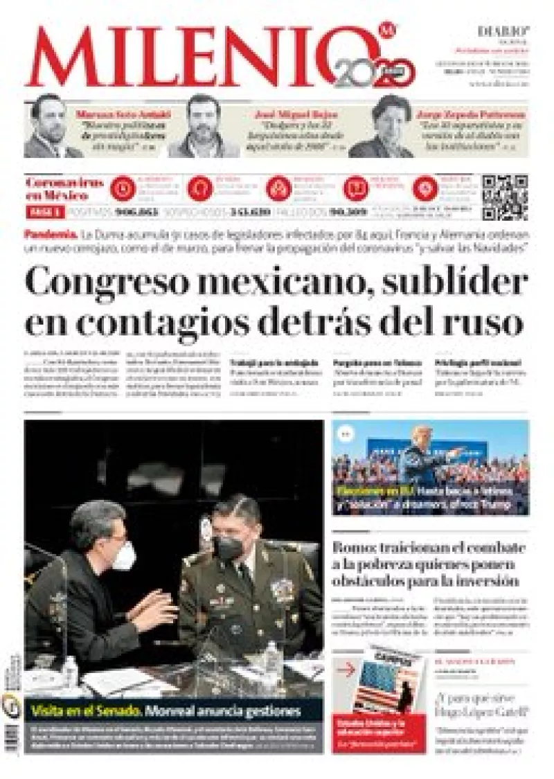 En lo que va de la emergencia sanitaria provocada por el COVID-19, 84 legisladores se han contagiado —de ellos el senador Joel Molina y el diputado Miguel Acundo González fallecieron—, lo que convierte al Congreso mexicano sublíder mundial de infectados, solo detrás del ruso, indica Milenio . Respecto al Senado, 15 de sus integrantes se han contagiado, de los cuales uno murió la semana pasada y seis han dado positivo en los últimos días, como la senadora Josefina Vázquez Mota.