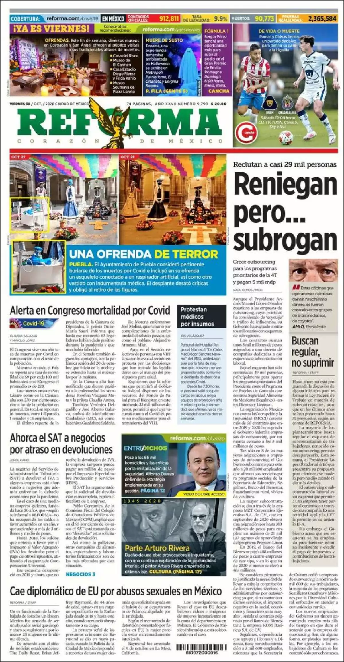 Aunque el presidente Andrés Manuel López Obrador cuestiona a las empresas de outsourcing y considera “coyotes” y traficantes de influencias, su gobierno ha asignado contratos por al menos 5 mil millones de pesos a una docena de compañías dedicadas a ese esquema de subcontratación laboral, reseña Reforma en uno de los temas de portada.