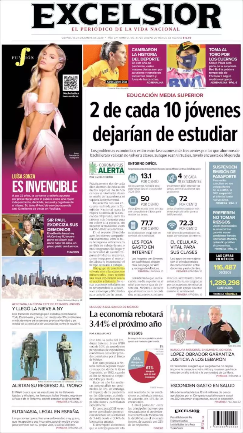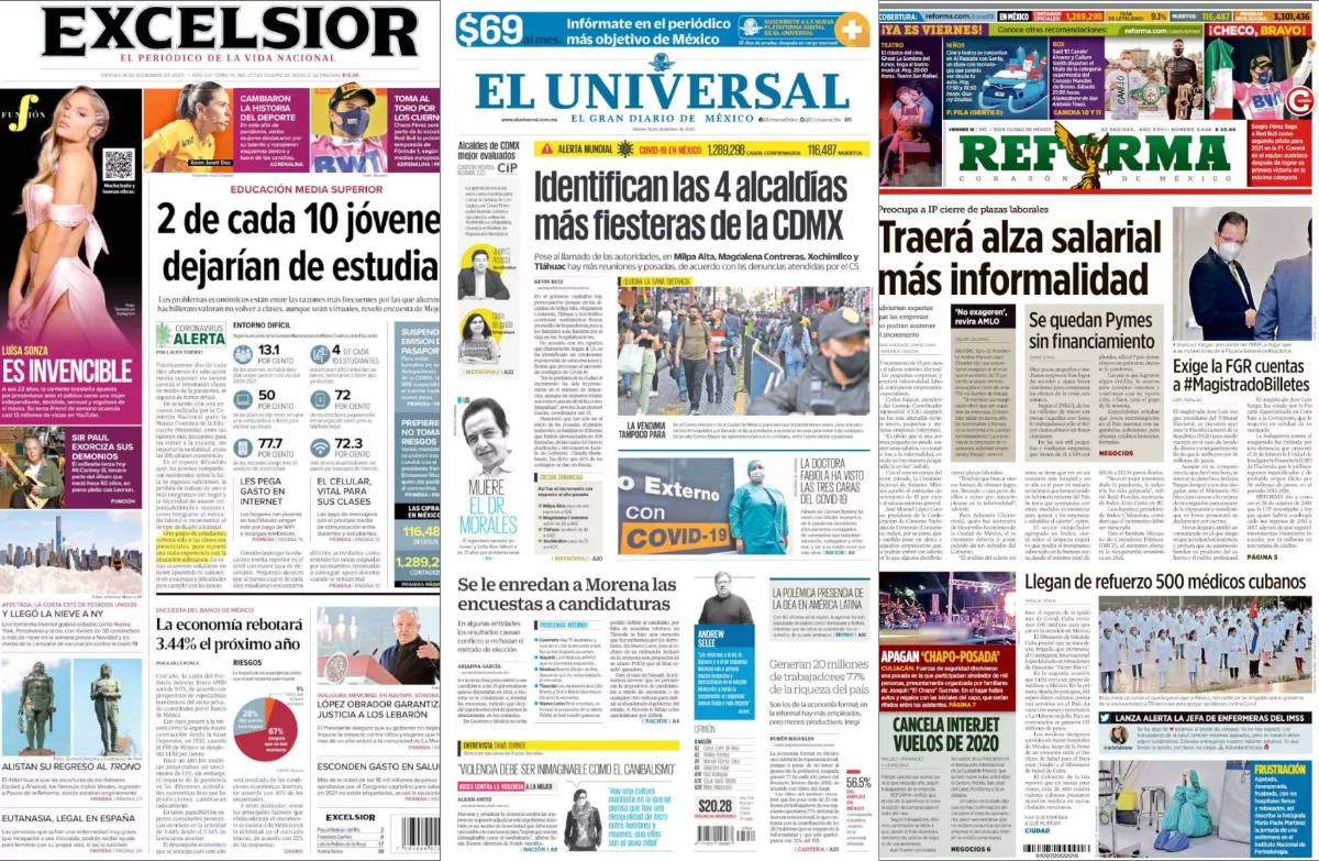 Prácticamente dos de cada diez alumnos de educación media superior no tienen certeza si retomarán clases en medio de la pandemia, ni siquiera de forma virtual, consigna Excélsior en uno de los temas de portada.