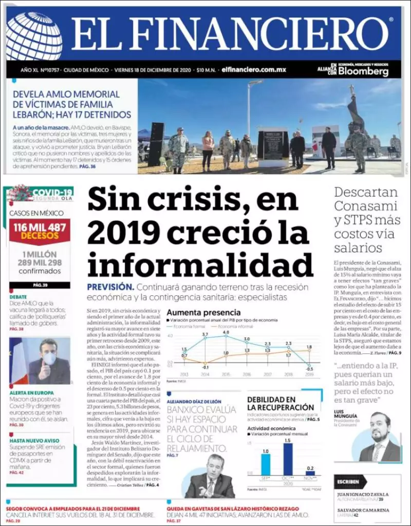 En 2019, sin crisis económica y en el primer año de la actual administración, indica El Financiero , la economía informal ganó terreno y registró su mayor avance en siete años, mientras que la actividad formal reportó su primer retroceso desde 2009, y los especialistas esperan que esta situación se acentúe en el presente año.