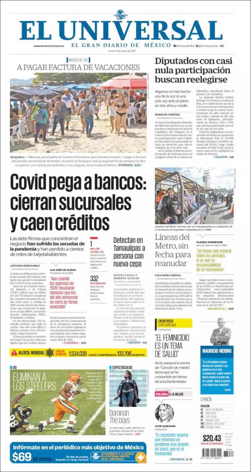 El sistema financiero del país aún padece las secuelas de la pandemia del COVID-19, refiere El Universal. Al cierre de octubre de 2020, el virus orilló a que miles de clientes rompieran sus contratos de tarjetas de crédito con los grandes bancos que operan en México, al tiempo que algunas sucursales de esas instituciones no pudieron seguir de pie y bajaron la cortina.