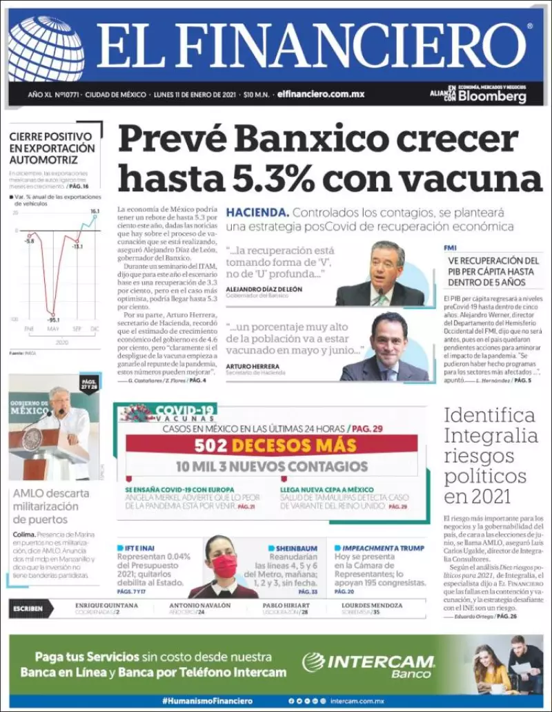 Prevé Banxico crecer hasta 5.3% con vacuna