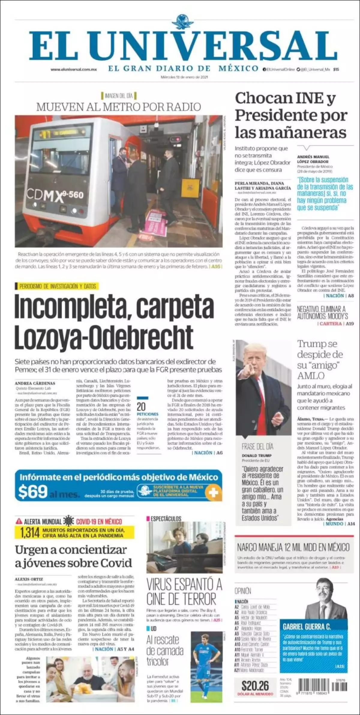 A unos días de que venza el plazo para que la Fiscalía General de la República (FGR) presente ante un juez las pruebas que tiene sobre la trama de corrupción de Odebrecht y la participación del exdirector de Petróleos Mexicanos (Pemex), Emilio Lozoya Austin, las autoridades mexicanas aún aguardan recibir información de siete gobiernos a los que han solicitado asistencia jurídica para integrar el caso, señala El Universal en uno de los temas de portada.