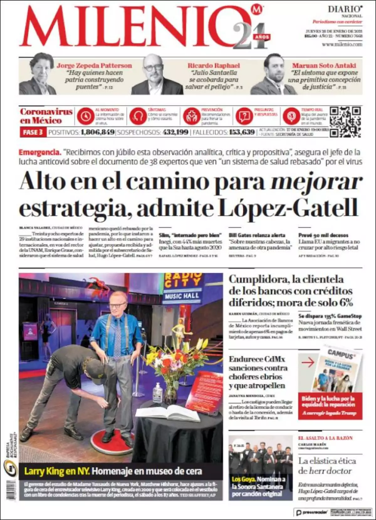 Por primera vez desde que inició la pandemia por covid 19, el subsecretario de de Salud federal, Hugo López-Gatell, admitió ayer hacer un “alto en el camino” para evaluar y mejorar la estrategia nacional de combate al coronavirus, indica Milenio . López-Gatell anunció que en las próximas semanas el gobierno federal determinará si cambia de rumbo en la estrategia para controlar la epidemia, si incluyen las recomendaciones del grupo de expertos, si multiplican los esfuerzos, si cambian el programa de vacunación o si solo responden a cada sugerencia.