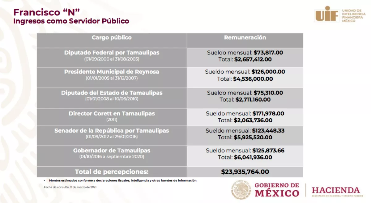 La UIF argumenta que existe una disparidad entre los inmuebles pertenecientes a las asociaciones y a su familia y los ingresos que pudo obtener como servidor público elactual gobernador, además de que se detectaron esquemas irregulares de compra.