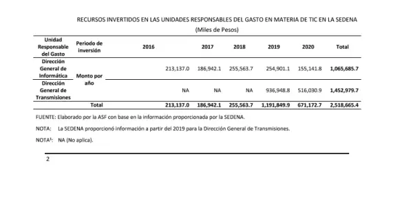 “Para que la Secretaría de la Defensa Nacional en futuras contrataciones en materia de Tecnologías de Información y Telecomunicaciones (TIC) fortalezca los controles de supervisión, seguimiento y validación por parte de los administradores de contrato y personal autorizado para la supervisión y vigilancia del instrumento jurídico, realizando revisiones independientes a las efectuadas por el proveedor sobre los servicios prestados”, se relata.