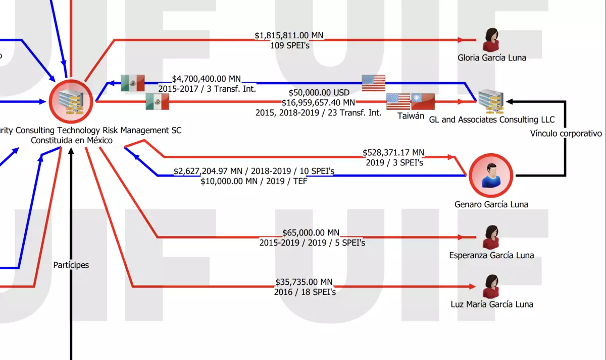 Se resalta que de acuerdo a las investigaciones, estas personas se coludieron con el entonces titular de la Secretaría de Seguridad Pública Federal, Genaro García Luna y sus socios Jonathan Alexis “N” y Mauricio Samuel “N”.
