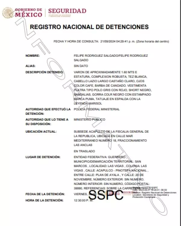 Felipe Rodríguez Salgado fue quien supuestamente dio la orden de pulverizar los huesos calcinados de los normalistas de Ayotzinapa para ser depositados en bolsas de basura negras que serían arrojadas al río San Juan, según dijo en su momento el exprocurador general de la República, Jesús Murillo Karam.