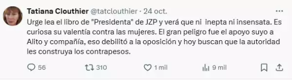 "En cambio, usted no parece poder decirle 'NO' a su 'padre político' y a sus muchas ocurrencias destructivas. ¿Quién es entonces “la junior”?", publicó.
