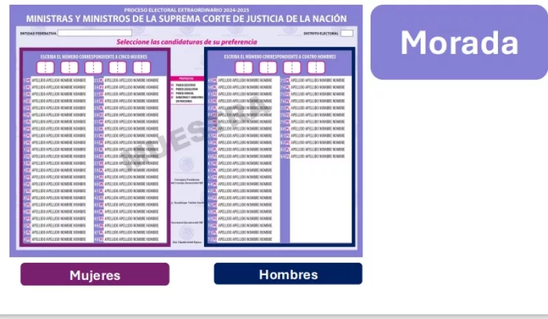 En el caso de la boleta para ministras y ministros de la Corte, se deberán elegir el número de cinco mujeres y de cuatro de nombres; para magistraturas de la Sala Superior del Tribunal Electoral, se podrán el número de una mujer y un hombre y, para magistraturas del Tribunal de Disciplina, tres mujeres y dos hombres.