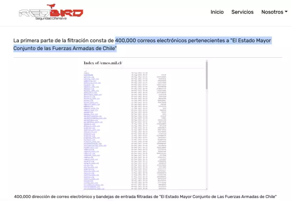 En uno de los sitios con información publicada, se destaca que se tienen "400,000 correos electrónicos pertenecientes a 'El Estado Mayor Conjunto de las Fuerzas Armadas de Chile'".