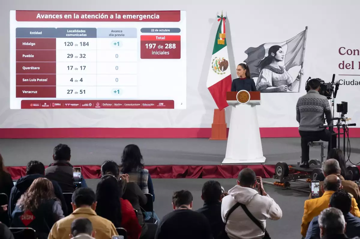 La coordinadora de Protección Civil explicó que también se logró restablecer casi el 100% del servicio de salud, salvo en Veracruz e Hidalgo, el avance se reporta en 99.9% y 99.1%, respectivamente.