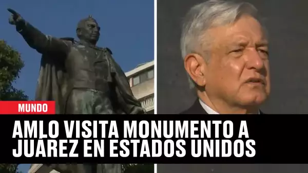AMLO cantó el himno nacional mexicano frente al monumento a Benito Juárez en Estados Unidos